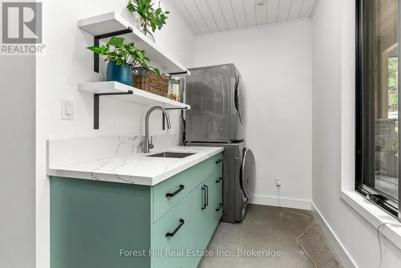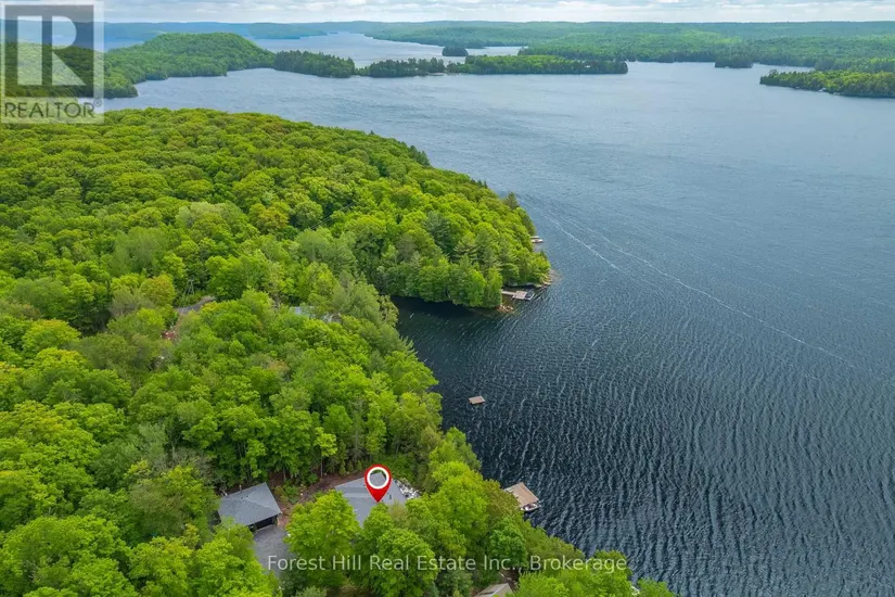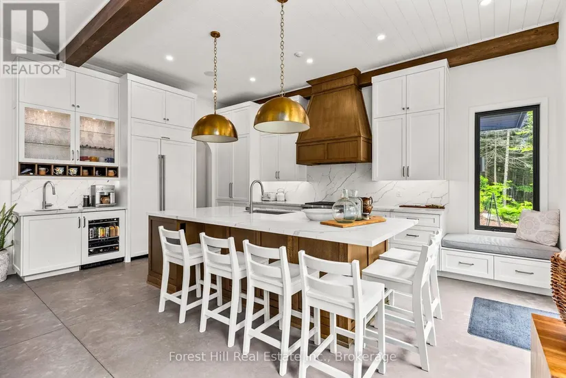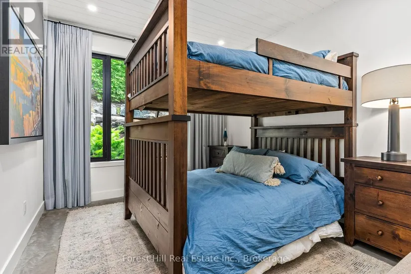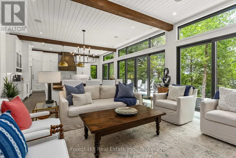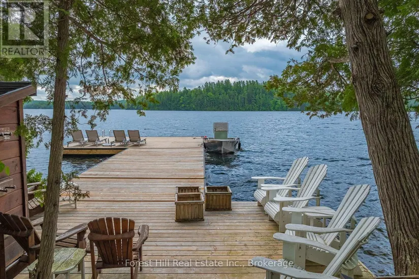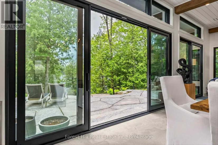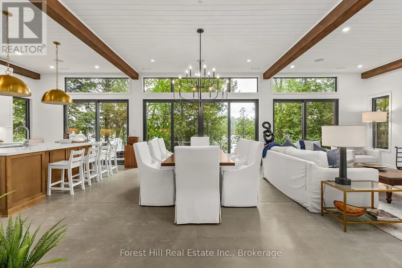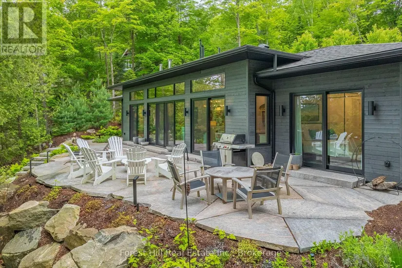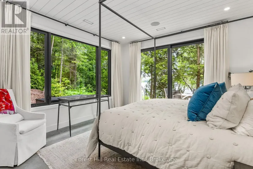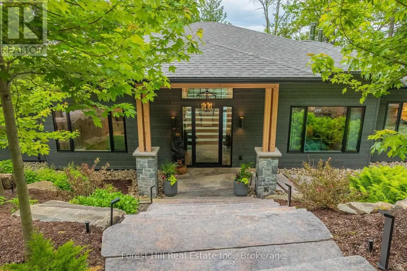 The art of perfection! Masterfully executed ultra chic new contemporary lake house on crystal clear Kawagama lake, Haliburton’s largest most beautiful lake. An absolute showcase of modern design and luxury. Floor to ceiling glass, gourmet chef’s kitchen with fabulous expansive island for entertaining, gorgeous master suite with spa like bath including steam shower, grande living room space with impressive stone Stuv wood fireplace with guillotine fire screen. Relax in front of the Stuv standing stick fireplace in the cozy knot free cedar muskoka room that invites the natural environs in. Stroll out to the impressive cut granite patio, extensive granite landscaping, lighting and irrigation throughout the property. Complimenting the principal residence is the double heated insulated garage with standout glass overhead doors, great for all the toys, cars or sports lounge. Sizeable lounge dock at the shore to take in the magnificent open lake views. Bring your cocktails with you for a sauna and revitalizing lake swim. Whole house generator, in floor heating, state of the art mechanicals, eight foot doors, eleven foot ceilings, drilled well, to many features to list. The attention to detail is in a class of it’s own, an absolute “wow” factor!