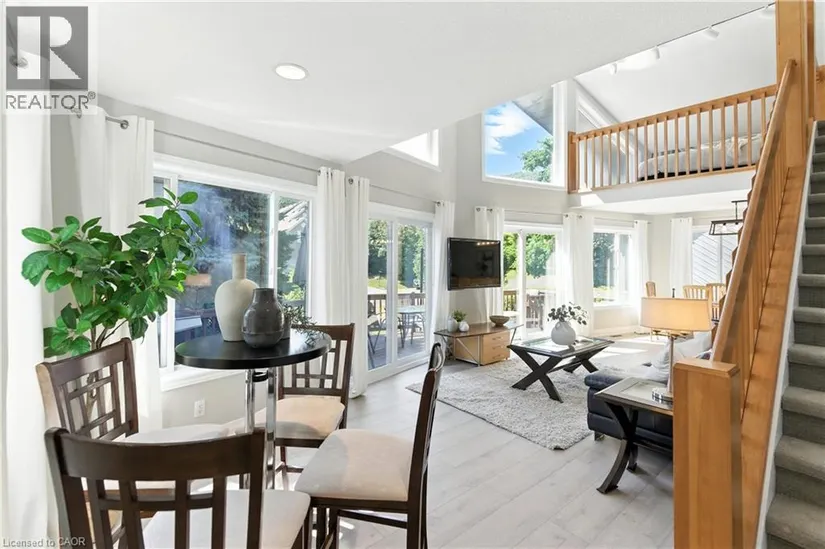 Welcome home to an immaculate chalet retreat in the heart of Blue Mountain where mountain views, modern updates, and four-season living come together. Just steps to the ski lifts and Village, this property offers the perfect blend of comfort, style, and location for families or investors alike.Recently refreshed with new flooring on the main level and fresh paint throughout, the home is move-in ready and beautifully maintained. The open-concept main floor showcases a dramatic living room with soaring cathedral ceilings and a wall of windows that frame breathtaking slope views. A seamless flow connects the living area, dining space, and the spacious kitchen featuring stone counter tops, plenty of cabinetry, and stainless-steel appliances, ideal for après-ski entertaining or hosting family gatherings.The layout is thoughtfully designed for both privacy and versatility. The main level offers a bedroom with ensuite privilege to a 4-piece bath, while the upper level features two additional bedrooms, two versatile lofts, and a convenient powder room. The lower level is a complete retreat of its own with two more bedrooms, a spacious games room with pool table, a spa-inspired bathroom with steam shower, laundry, and a separate outside entry, perfect for guests or multi-family use.Outdoor living spaces are equally impressive. A large front deck captures the energy of the mountain, while the back deck offers a covered hot tub and space for outdoor dining. The backyard extends into a natural setting with a tranquil creek, providing a peaceful backdrop for year-round enjoyment, from après-ski evenings under the stars to summer bbq’s and cozy nights by the fire pit. Immaculate inside and out, this home is a rare opportunity to own a property that truly embraces the Blue Mountain lifestyle. Whether as a full-time residence, vacation home, or income-generating investment, this chalet offers the best of four-season living in an unbeatable location.