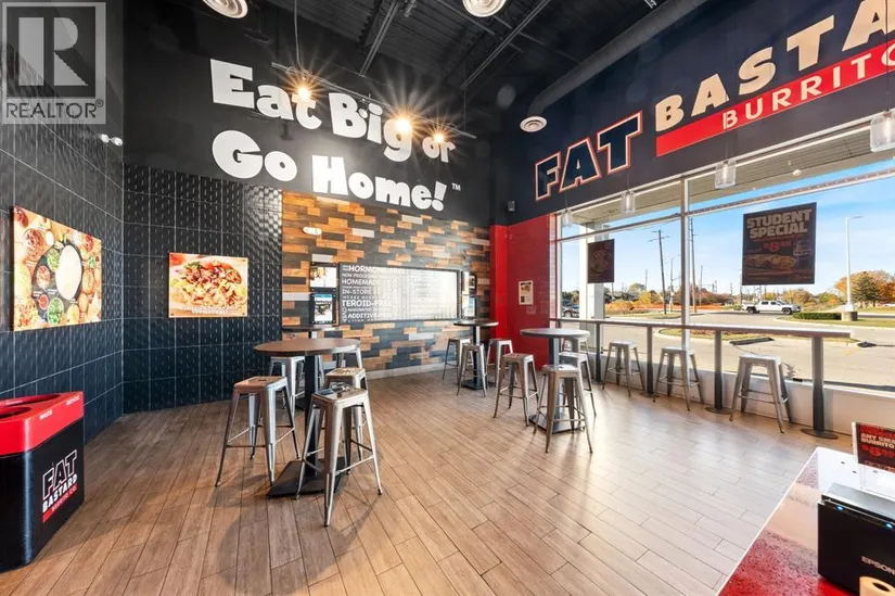 Sarnia’s Next Hot Spot Awaits! Seize this opportunity to own a thriving Fat Bastard Burrito Co. franchise, established in 2022, on bustling London Road in Sarnia. This is your chance to step into a popular, high-traffic location with a proven concept and a loyal customer base. Perfect for a driven owner-operator or a family looking for a profitable venture. The fully equipped kitchen and established brand presence make this a truly turnkey operation. Comprehensive training and transition support will be provided for a smooth transition. Franchise fees included in price. Serious inquiries only – this is an investment opportunity you won’t want to miss! (id:7434)