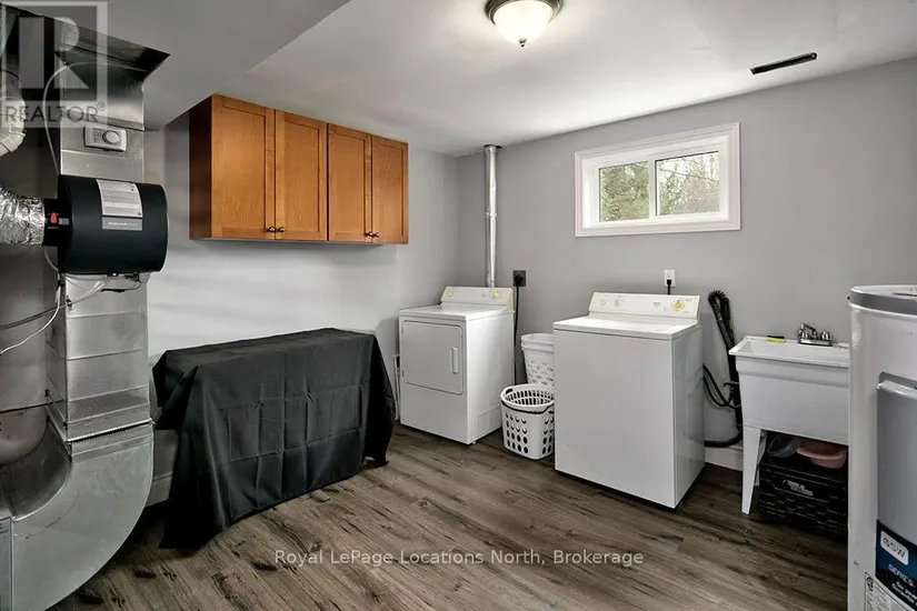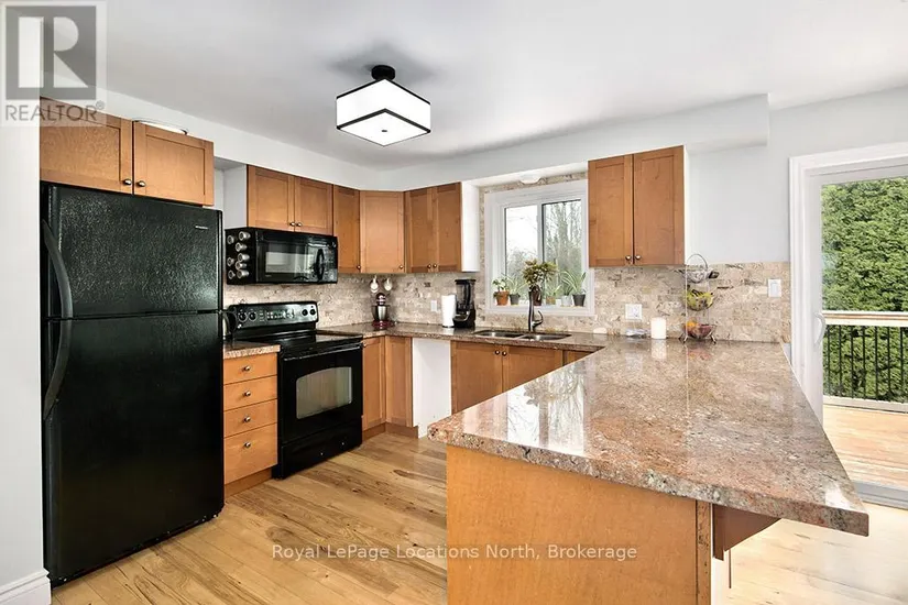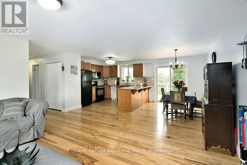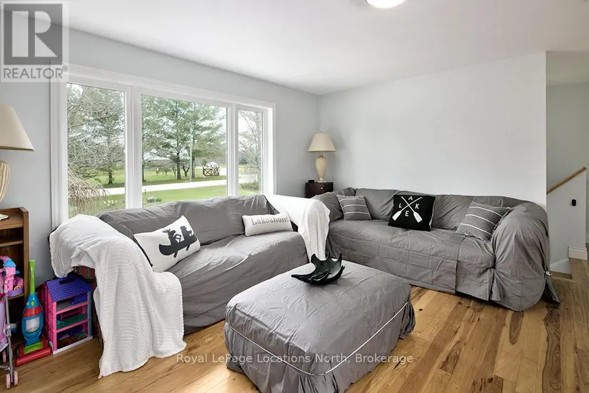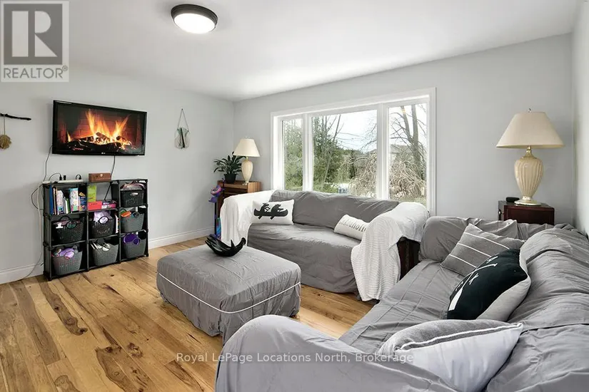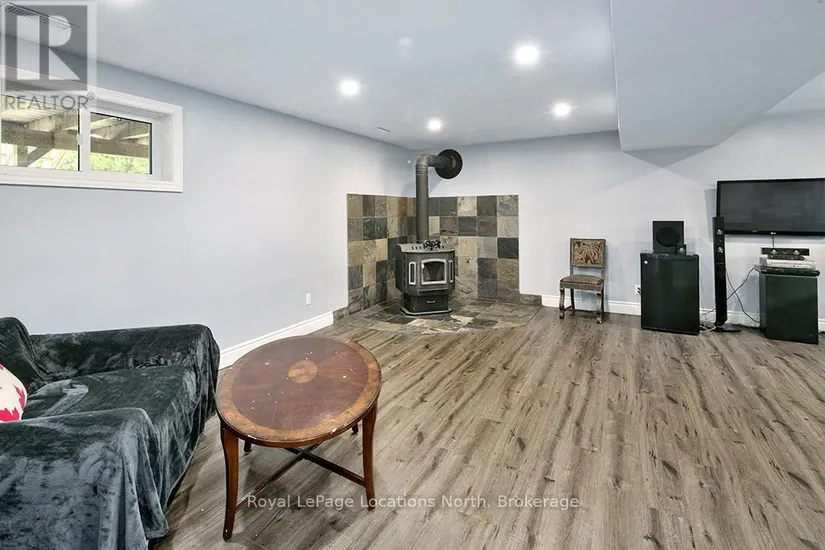 1/2 ACRE neighbouring some of the best fishing spots and trails Meaford has to offer. Walk up into an open concept Kitchen, Dining and Living space. The Hickory Flooring will mesmerize you as you walk through the main floor. A large front window and westerly facing sliding door provide beautiful natural lighting. Down the hall you will find an updated 3 piece bath, the large Primary Bedroom and 2 other Bedrooms. Heading downstairs you will walk into the large recreation room with a wood burning fireplace. A large bathroom with a jet tub surrounded by porcelain tile, Quartz flooring and a granite sink countertop. A fourth large bedroom and open laundry/Utility room is also featured. Relax outside in a private rural setting with a cedar Deck (2020), Hot Tub & raised garden bed. The fire pit is a great space for entertaining. The Shed has hydro and finished with LVP flooring. This is a perfect family home you don’t want to miss out on. Call for full list of updates and to book your showing!