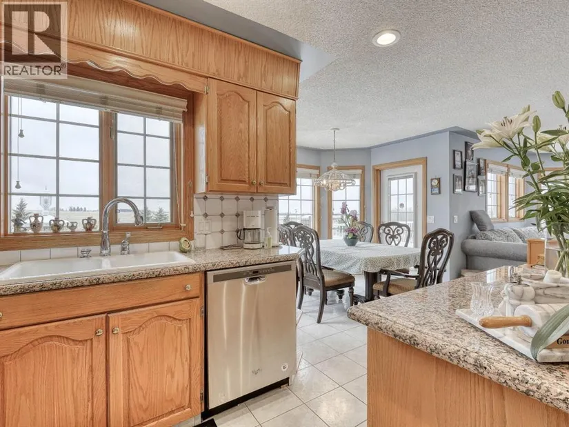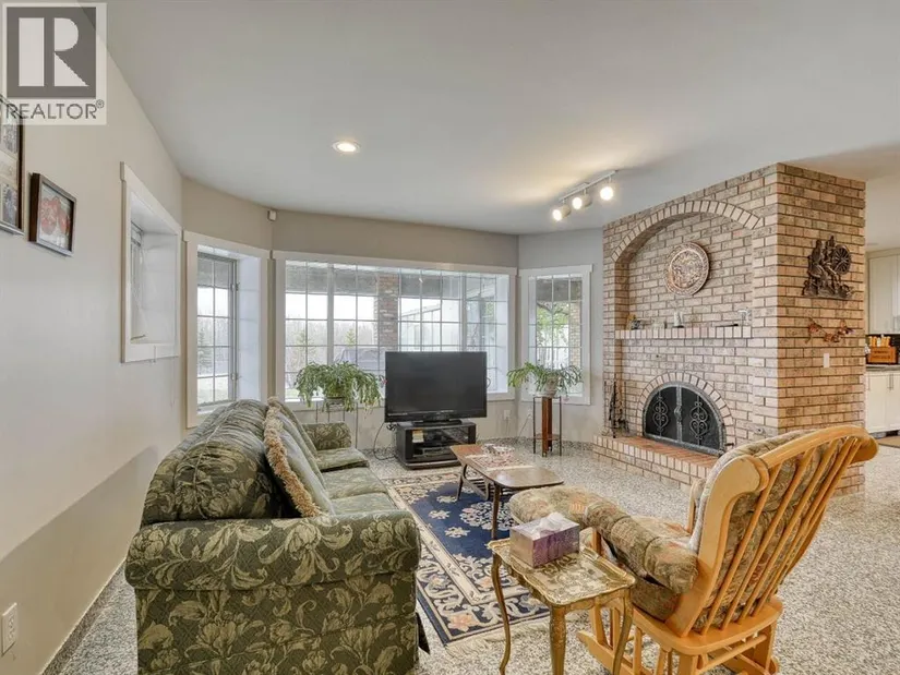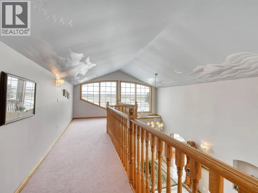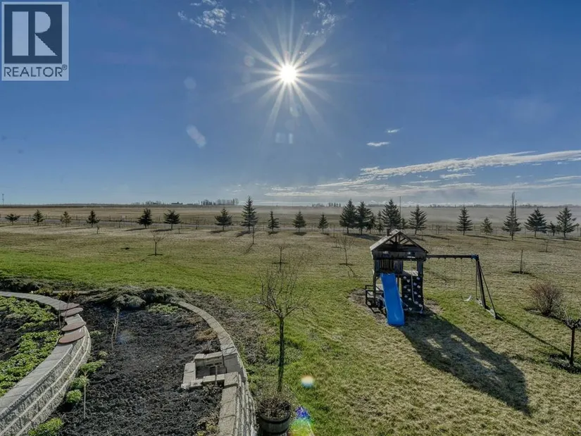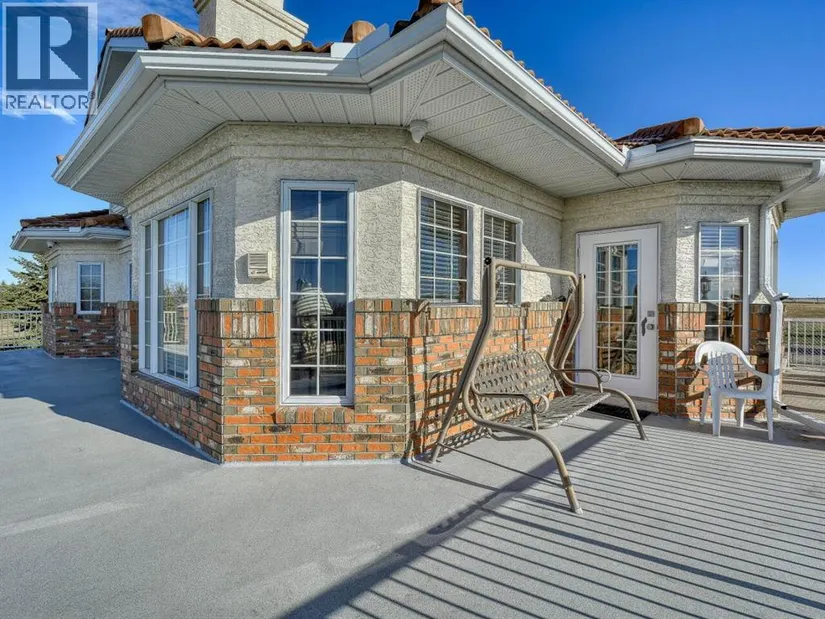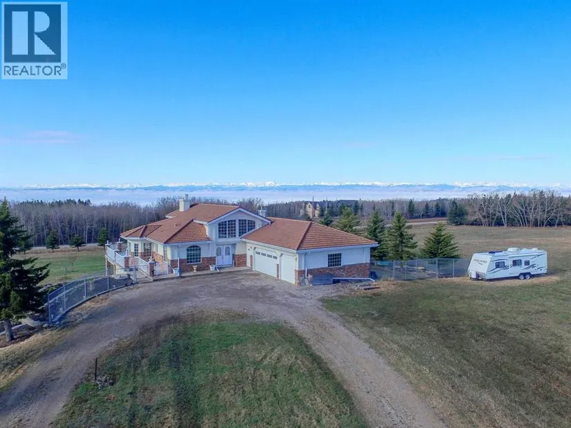 Immaculate Home close to Calgary situated on a sub-dividable 15.99 acre lot surrounded by beautiful trees and landscaping. Italian inspired construction with predominant concrete throughout and a cold room cellar that’s naturally cold all year round without mechanical intervention. The 3 Bedroom (two above grade) open concept Walkout Home is well illuminated and features a beautiful kitchen, eating area / dining room, upper loft flex room / floor, gas fire place on main floor, wood burning fire place on lower floor, split access from the garage to the lower level and main level, laundry roughed in upstairs and full laundry downstairs, wet bar downstairs, second kitchen on lower floor and den. Incredible attached heated greenhouse and enclosed patio in the back.