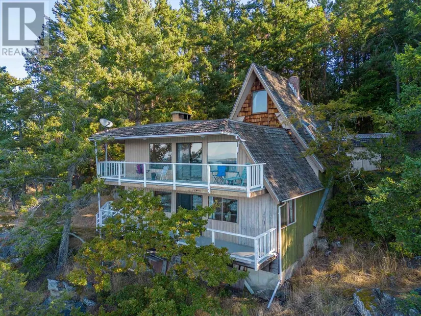 One of the best views on the island” Nestled up north on Galiano Island, this stunning 1.88 Acre, WEST facing WATERFRONT property with A-Frame cabin (with addition) is perched above Trincomali Channel, which separates Galiano and Saltspring Island. This bright, sun drenched property with mature fruit trees and a huge 900 square ft garage is located just minutes from beach access, and 30 minutes form the ferry. The 2,000+ square ft home is bursting with character. With a generator that supplies electricity when needed and 4 fireplaces (plus baseboard heat) this 4 bedroom, 2 bathroom home stays toasty warm in the winter – perfect for year-round living. With breathtaking, 180 degree ocean views from every level. Bring an offer – Sellers are MOTIVATED.