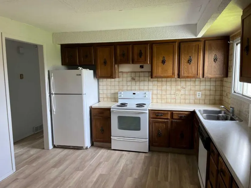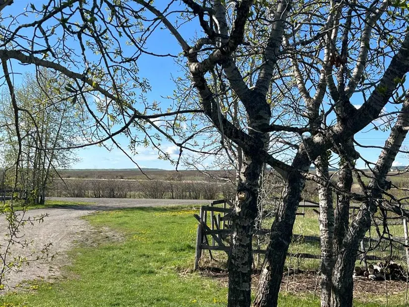 Embrace the best of country living just minutes from the city on this scenic 10-acre parcel in Rocky View County. Set well back from the road behind mature trees and fencing, this 3-bedroom bungalow offers privacy, tranquillity and sweeping views of the Rocky Mountains. Whether you’re starting your acreage journey or downsizing with room to roam, this property delivers the ideal rural lifestyle, with city convenience still within easy reach. Inside, the home has been freshly painted and features all-new plank flooring throughout. Oversized windows in the living and dining areas frame breathtaking mountain views and draw in natural light from dawn to dusk. A charming wood-burning stove set against a brick surround adds warmth and character, complemented by a wood-beam ceiling for a touch of rustic appeal. The kitchen offers functional space to make your own, while the open layout encourages easy flow for everyday life and casual entertaining. Three well-sized bedrooms are tucked down the hall, including a primary with a private 3-piece ensuite. A second 4-piece bath adds family-friendly convenience. The full basement remains undeveloped and ready for your vision. Step outside and experience the full potential of country living. The land is fenced and cross-fenced with a horse shelter and a mix of open pasture and tree shelter. The attached rear storage offers practical utility, while the orientation of the home captures panoramic mountain views and golden prairie sunsets. Located just a short drive from the Calgary city limits, this peaceful property offers space to grow, play, and unwind, with the benefit of proximity to shopping, services, and commuter routes. It is only a short 10 minute drive to Westhills Shopping Centre, with its multitude of shops, restaurants and entertainment. Whether you’re looking for your first acreage or a manageable homestead close to the city, this is a rare opportunity to enjoy nature, views and potential on your terms. Water is trucked in to property!