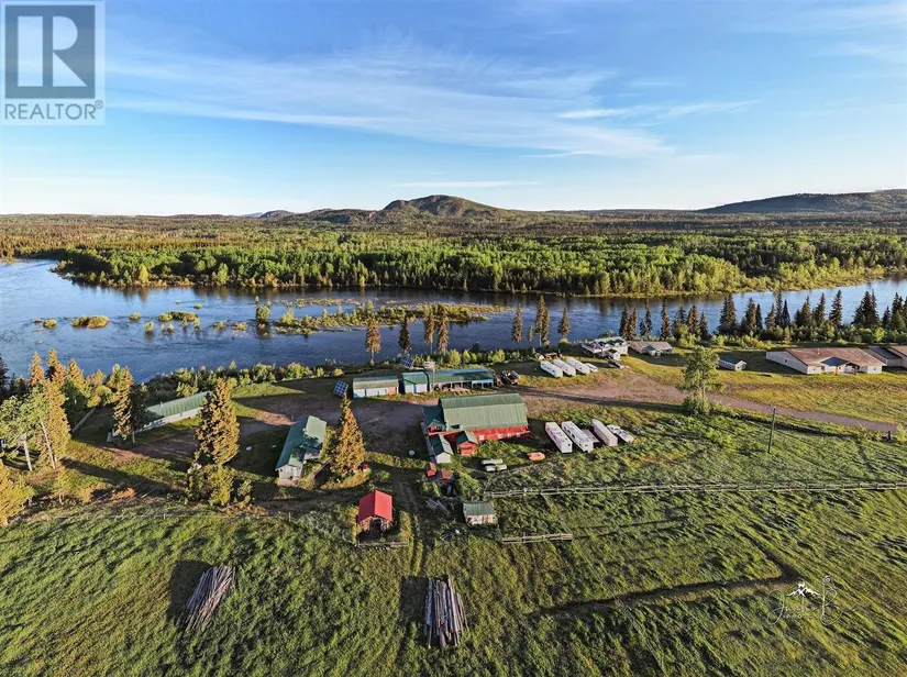 The Historic River Ranch is 3,933 acres, 39 titles, 17 km of River frontage on the Nechako River, 2 houses, office, accommodation buildings, conference hall, 44 room unfinished hotel, off grid with solar & generators, airstrip. Barn, corrals, 1,200± acres of hay and grassland, Range license, water rights. Significant timber value with recent timber cruise.