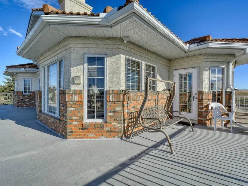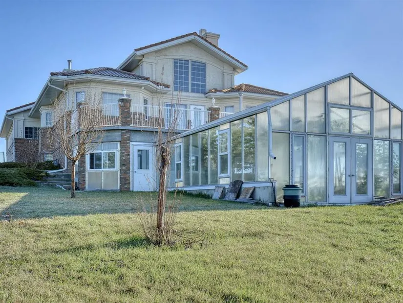 Address: 254209 Woodland Road, Rural Rocky View County, AB Immaculate Home close to Calgary situated on a sub-dividable 15.99 acre lot surrounded by beautiful trees and landscaping. Italian inspired construction with predominant concrete throughout and a cold room cellar that’s naturally cold all year round without mechanical intervention. The 3 Bedroom (two above grade) open concept Walkout Home is well illuminated and features a beautiful kitchen, eating area / dining room, upper loft flex room / floor, gas fire place on main floor, wood burning fire place on lower floor, split access from the garage to the lower level and main level, laundry roughed in upstairs and full laundry downstairs, wet bar downstairs, second kitchen on lower floor and den. Incredible attached heated greenhouse and enclosed patio in the back.